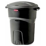 Rubbermaid Roughneck 32 Gal. Black Round Trash Can with Lid. Handles lock down providing double security and extra protection against rodents, pets, etc. Sturdy handles allow easy carrying to the curb. Blow-Molded Plastic. NEW in Retail Packaging. Please Preview. Retail $21.97 |