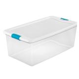 Sterilite 106 Qt. Latching Storage Box, 4pk (Color Varies). Latching Boxes feature modern styling, a wide array of sizes, secure latches and an innovative hinging lid. Hinged lid works by simply undoing 1 Latch and lifting the lid. The other latch stays attached and acts as a hinge, even when the lid is open all of the way, to provide easy access with 1 hand. NEW Without Packaging. Please Preview. Retail $63.92 |
