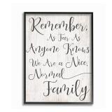 Stupell Industries 11 in. x 14 in. "Black and White We are a Nice Normal Family" by Artist Daphne Polselli Framed Wall Art . First came wood, then came canvas, and now we introduce our 'Framed Giclee Textured Wall Art.' we start with a giclee lithograph mounted on wood, and finish it with a texturized brush stroke finish. We didn't stop there though as we fit it within a 1.5 in. thick ebony wood grain frame to add depth and diminsion. Ready to hang. NEW without Packaging. Please Preview. Retail $32.58 |