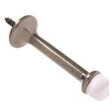 The Hillman Group 3 in. Pewter Standard Rigid Door Stop (5-Pack). This Decorative Rigid Door Stop is designed to install on a wall, door, or baseboard to prevent wall or door damage. The large rubber tip helps soften contact with wall or door to prevent damage. Simply Installation by fastening to surface with attached mounting screw. The rubber tip easily removes to reveal a screwdriver recess used to install the door stop. The decorative stop design complements any room. NEW in Retail Packaging. Please Preview. Retail $13.41 |