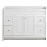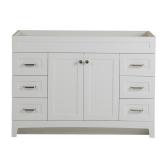 Home Decorators Collection Thornbriar 48 in. W x 21 in. D Bathroom Vanity Cabinet in Polar White. This Home Decorators Collection Thornbriar Vanity Cabinet in Polar White features a chic appearance that is perfect for nearly any home décor. Each vanity includes brushed nickel hardware with full extension drawers for added storage. Made from durable engineered wood. NEW in Retail Packaging. Please Preview. Retail $599.99