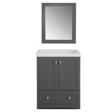 Home Decorators Collection Thornbriar 24.5 in. W Vanity in Cement with Cultured Marble Vanity Top in White with White Sink and Mirror. The 24.50 in. Home Decorators Thorn briar vanity in Cement and cultured marble White vanity top demonstrates a chic appearance that is sure to uplift the atmosphere of any room. The Cement finish presents soothing cool gray color that is perfectly paired with an extra thick 2 in. cultured marble white vanity top and full extension drawers for complete access to your supplies. Durably constructed, the Thorn briar vanity will undoubtedly impress your guests. NEW in Retail Packaging. Please Preview. Retail $299.99
