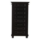 Home Decorators Collection Black Jewelry Armoire. Characterized by crown molding, recessed panels and wedge feet, our Martin Jewelry Armoire organizes your accessories in crisp, transitional style. 7-Drawers with bronze-finished handles store earrings, watches, brooches and more. 4 of the drawers include dividers. The top of this armoire lifts up to reveal both a beveled mirror and a removable tray that offers easy access to frequently worn favorites. 2-Doors with round knobs flank the cabinet; each one features 10 interior hooks that serve as bracelet and necklace holders. In Opened Retail Packaging. Please Preview. Retail $310.00 |