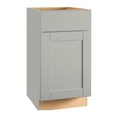 Hampton Bay Shaker Assembled 18x34.5x24 in. Base Kitchen Cabinet with Ball-Bearing Drawer Glides in Dove Gray. The furniture-quality finish on the Hampton Bay Base Cabinet adds warmth and beauty to your kitchen design. The cabinet's 3/4 in. shelf thickness offers durability and its adjustable shelf design helps you maximize your storage space. The cabinet has a 4-sided hardwood drawer box that opens easily on smooth glides, giving you easy access to a convenient storage space. In Opened Retail Packaging. Please Preview. Retail $137.00 |