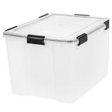 IRIS 74 Qt. Weather Tight Storage Box in Clear, 7pk (NO LIDS). Store blankets, sporting equipment and other bulky valuables in this Weathertight storage box. The Weathertight seal keeps air and moisture out. Two of the 19 Qt. boxes (UCB-SS) stack securely on top of the 74 Qt. box (UCB-LDD) to create a customized storage solution, perfect for any space. Without Packaging. NO Lids. Please Preview. Retail $188.93 |