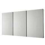 Pegasus 48 in. W x 26 in. H Frameless Recessed or Surface-Mount Tri-View Bathroom Medicine Cabinet with Beveled Mirror. This mirrored cabinet features a Tri-view beveled frameless door that can be installed with hinge. Inside, three adjustable glass shelves hold all your toiletries and bath items. Rust-free aluminum construction with mirror back ensures years of use. In Opened Retail Packaging, Mirror Looks Intact. Please Preview. Retail $299.00 |