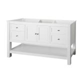 Home Decorators Collection Gazette 60 in. W Bath Vanity Cabinet Only in White for Center Bowl Design. This 60 in. console-style vanity from the Gazette collection has an alluring blend of traditional and modern influences. The vanity features a unique lower storage shelf, enclosed storage spaces behind two doors and four drawers. With the vanity’s superior, clean-line design, this piece will look amazing in any bathroom, especially paired with the Gazette collection accent pieces. NEW in Retail Packaging. Please Preview. Retail $849.00