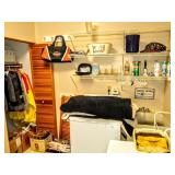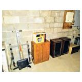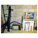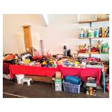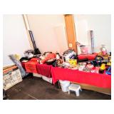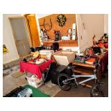 Garage, Tools, and Hardware Garmin GPS, 4 Wheel Dolly, Workmate Table, Brand New Never Opened Ryobi Miter Saw, Aluminum Car Rim, Hand Tools, Power Tools, Hardware, Jack Stands, Roof Rack, Electronic Cooler, Tool Boxes, Cleaners, Chemicals, Car and Motorcycle Care Products, Beer Making Kit, Tarps, Mini Fridge, 20” Bicycle, Hats, Shovels, Picks, Wheelbarrow, Wagon, Kohler Gas Lawnmower, Outdoor Furniture, Electric Weedwhacker, Garden Groom Electronic Trimmer, Bike Rack, Pelvic Exercise Machine, Rowing Machine, Treadmill, and so much more!