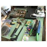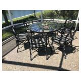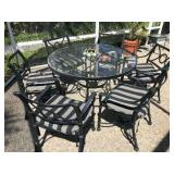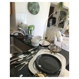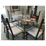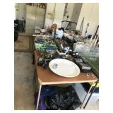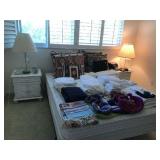 Good quality furnishings: king & queen beds, dining set, breakfront, chest, black leather sofa, over size leather chair, armchairs, 6 chrome & leather stack chairs, bar stool, side tables, silver plate, sets of china, stemware, Mahjong game, patio items, lamps, pictures, Tumi luggage, tray table, mirrors, books, 3 files, stack on tool chest, Health Rider, man’s bike, Craftsman bench saw, fishing poles & reels, Weber grill, linens, full kitchen & plants Sale by Julie McClure |
