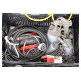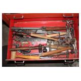 Tool Boxes & Tools Mac rolling toolbox- 8 drawers, Snap-on tool box w/ 9 drawers, lot of useful tools incl. Ratchets, Sockets, Flaring tool, wrenches, Pliers, clamps, hammers, air greaser, screw drivers, large bench vise, snap-on torque wrench, Hedge trimmers, yard tools incl. rakes, shovels, trimmers, brooms, Draw Shaves and woodworking, digital multimeters, Craftsman Scroller saw, Chicago Electric hammer drill, Craftsman reciprocating saw, Craftsman router, various drill bits, dremel bits, rotary tool, Ranger 6 volt drill driver, Skil palm sander, Craftmans belt and disc sander, DeWalt 7739 Radian arm saw, Craftsman 12” band saw, etc.