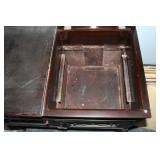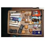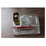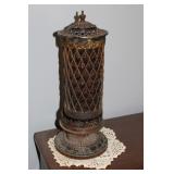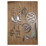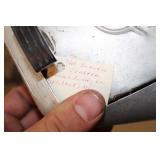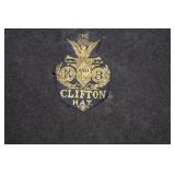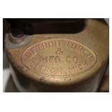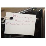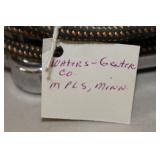 Collectables, Advertising & Interesting: Cast Banks and Sewing Bird, Eyewash cups, small collection of Pie birds, Kerosene lamps, Antique Lanterns incl. Railroad, Clifton hat, Stovepipe hat, Straight Razors, Knick Knack Shelf, small batch of military related incl. Helmets- 1 medic, Military outfits, badges, (2) Ink Well Desk sets, Ink Wells, Lighting Rod w/ weathervane and ball, Early Gin Bottle and others, Ann Arbor Brewing, old medicine bottles, Ball Ideal canning jar, (2) Detroit Torchs, Ypsilanti Eastern Phi Sigma Kappa Fraternity sign, Ice Cream Maker, Tin Chip Can, Wood Barrel, Confessions sign, Bakelite perfume bottle, Avon plates, Early Telephone, GWR Lanterns, Car decals, Pocket watch, Vintage umbrella, Ford Recognition plaques,