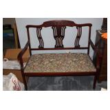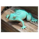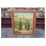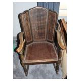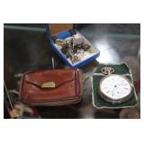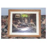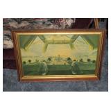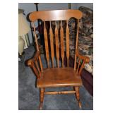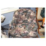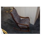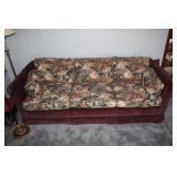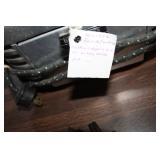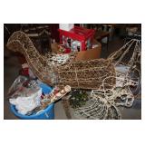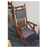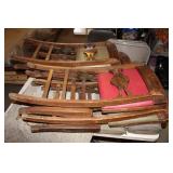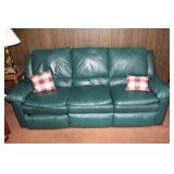 Furniture, Household, Art & Crocks Green leather sofa, Red leather reclining chairs, floor lamps, Mantle Clock, Patio Furniture, Patio Glider, Singer sewing machine, antique folding chairs, Christmas, stacking chairs, gun cabinet, picnic basket, Misc. glassware, crocks w/ blue #4, Starr Indiana Record cabinet, religious artwork incl. Jesus, Mary & Joseph, the Sportsman, Beveled mirror, gold gilded mirror, rocking chair, platform rocker, arts and crafts bookshelf, wicker rocker,