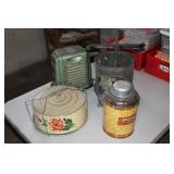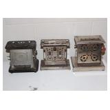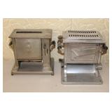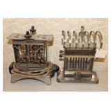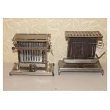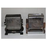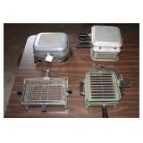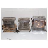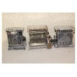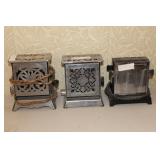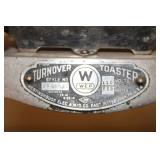 Antique Toaster Collection and other Kitchen Related: Large Antique Toaster Collection incl. 1913 Great Britian, Westinghouse Turn over toaster- Ohio, General Electric hot point, Bersted Chicago Ill., Universal 1918-1923 toaster w/ warming rack, Bersted, Manning Bowman, The Junior toaster- Ypsilanti, 1914 Turnover toaster- Westinghouse, Modernistic Toronto, Waters-Genter Co. Minn., Montgomery Ward Auto Bread Toaster, Estate Electric Toaster, 1930 Lindemann & Hoverson Model 205 toaster, Universal Landers, 1915 Frary Clark, Son-Chief tin toaster, 1927-30 Westinghouse, Turnover toaster, 1918-1928 New Britian Frary & Clark, Universal, Hot Point Edison Gen. Elec., 1914 Hot Point toaster, Victory brand toaster, Cast frying pans, Griswold #8 lid, Armstrong junior grill, Armstrong table stove, glass jar butter churn, Westinghouse fan, antique table fan, etc.