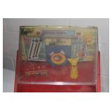 Toys & Electronics Fire Chief 503 pedal car- AMF, plastic pellet flat shooting game (as is), Rebound toy in box, Tonka grader, antique tennis rackets, misc. toys, puzzles, Lincoln Logs, Bennie babies, Frederick Willys pool table, flat screen TV, etc.