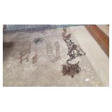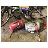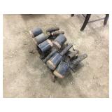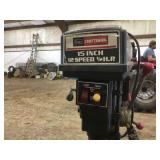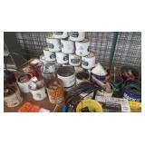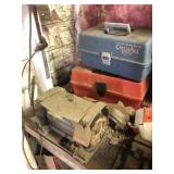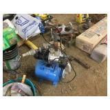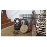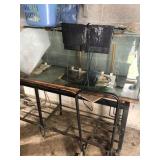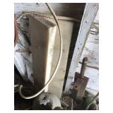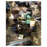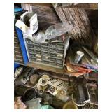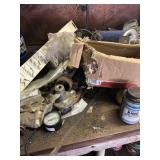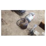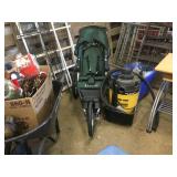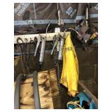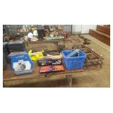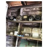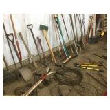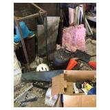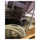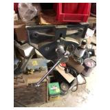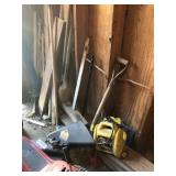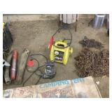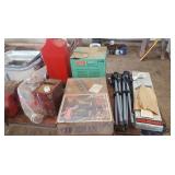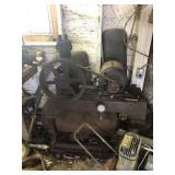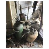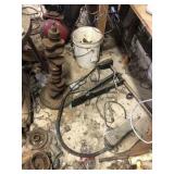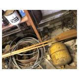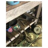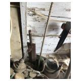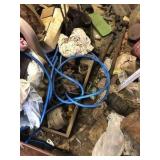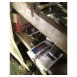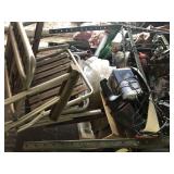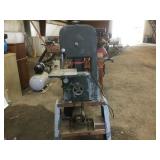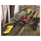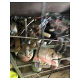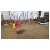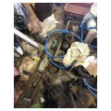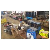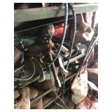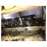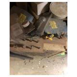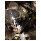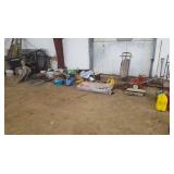 Tools: Presses, Dies, Scales, Bench grinders, Hardware, Hand tools, Old chisels, Vintage chainsaw, Inside calipers, Outside calipers, Power tools, Dura craft drill press, Disc sander, Belt sander, Scroll saw, Vintage Sprayer Sears, Corn sheller, Ban saw, Jointer, Table saw, Lawn roller, Shop vac, Craftsman Air compressor, Torches & Tanks, Weed wackers, Floor jacks, Pipe vise, Metal cutting band saw, Small table saw,