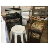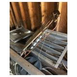 Misc.: Pool table - complete, Canning stove, Sinker molds, Ice fishing supplies, Enterprise No. 22 Meat grinder w/motor, Walkie Talkies, Several fishing poles and reels, Gas Ice auger, Semi Wheel covers, Gas cans, Clay targets, Lawn chairs, Kerosene heaters, Tow bar, Garden tools, Push mower, Extension cords, Coal stove, Galvanized tubs, Chains, Bike rack, Dolley, Picnic table, Cedar shingles,