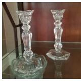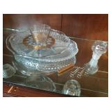 Decorative Accessories including Crystal bowls, candlesticks, plates, vases. Mercury Glass. Large pottery rooster. Art Deco cordial set Copenhagen, Daulton Baby Bunny cups Howard Miller Kitchen Clock