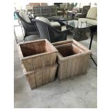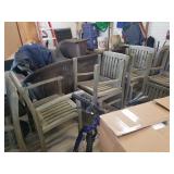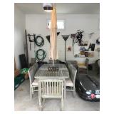 Patio Furniture, Teak Tables and Chairs, umbrellas and planters from Walpole Woodworkers (Rockwood).