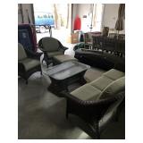 Faux Bar Harbor style wicker set by Ebele including small table, 2 side chairs and love seat.