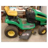 Rough Room : Mechanics tool box, wrought iron patio table, glider & chairs, several push mowers, flat screen tv’s, chop saw, leaf blower, hand tools, John Deere LA105 & Murray riding mowers, leaf sweeper, tool boxes, vacuums, fishing poles & tackle, wine cooler, heaters, decorations, tire changer, assorted box lots, miscellaneous furniture & more!