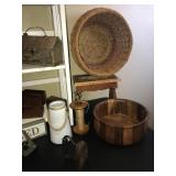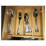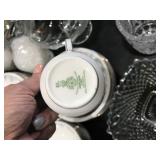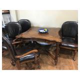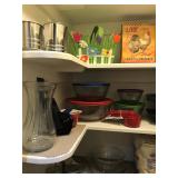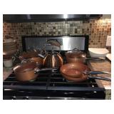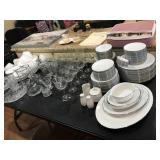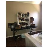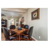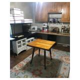 Dining Room furniture (game or dining table on casters), small kitchen appliances, Royal Doulton China (Angelique), Japan China set, kitchen utensils, copper pots/pans, Lodge cast iron, cookbooks, storage and more.