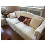 Exceptionally well maintained contemporary and traditional home furnishings including Ethan Allen 10 seat dining room table and chairs, 2 Ethan Allen white sofas, Ethan Allen sofa table with 2 benches, Ethan Allen large coffee table and end table, Arhaus upholstered chair, Ethan Allen wing back chair, Christmas décor, beautiful armoire, Seth Thomas clock, Fitz and Floyd Santas, French china, Pearson chair, Mitchell Gold and Bob Williams Sofa, wrought iron and wood Ethan Allen coffee table and sofa table, china, crystal, entertaining pieces, large area rugs, 2 full size beds and high end bedding sets, timeless style debutant dress, treadmill, some baby/child items, some sporting goods including bike, piano, some tools and garden items, small wine refrigerator, and more.