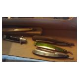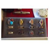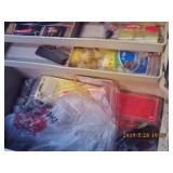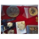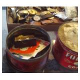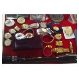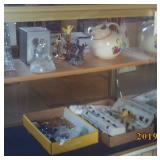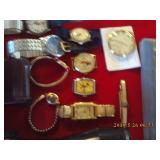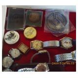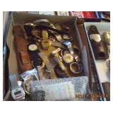 Antique Dresser w/ Hankie Drawers, Marble top Dresser, Marble top Commode,Crock Jugs,Lots of Jewelry, Elgin Pocket Watch, Many Older Timex Watches, Fishing Poles & Tackle, Knifes,