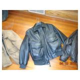 CLOTHES: (NOTE: MOST OF THE CLOTHES OFFERED ARE IN NEW SHAPE AND SOME PROBABLY NEVER WORN); SEVERAL LEATHER JACKETS/COATS; INSULATED COVERALLS; SHOES; BOOTS; SUITS AND MORE.