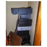 ELECTRONIC ITEMS: SEVERAL STEREO COMPONENTS; DVD PLAYER; VCR PLAYER(S); CD PLAYERS; SPEAKERS OF VARIOUS SIZES; RADIO; AND MORE.