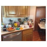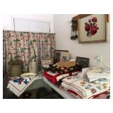 A partial list will include a John Deere weather vane and tractor seat, Hoosier style kitchen cabinet with frosted glass doors and flour bin, Singer treadle sewing machine in enclosed original cabinet-early 1900’s, humpback trunk, cast iron coffee grinder and lard press, copper wash kettle, Rock Island RR System lantern, glass oil lamps, oak child’s bent arm rocker and tall chair, pair of oak craftsman style rockers, kerosene stove, wooden barrel, firkins, crocks and jugs, old hand tools, pony tack, navy duffle, dolls, doll bed, quilts, crochet, needlework, limed oak drop leaf dinette with four chairs, Roseville console set, carnival glass, depression glass, Taylor Smith Taylor classic heritage dinnerware, Community silver plate flatware-‘Morning Star’, Franciscan Desert Rose-USA and England, Pyrex, Corning, waterfall cedar chest, smoking pipes, games, Smith Corona Sterling 12 manual typewriter, Smith Corona Electra 220 electric typewriter, marbles, pocket knives, mens and women’s jewelry, Gone With The Wind style oil lamp-electrified, old books and bibles, Will Durant ‘The Story of Civilization’ in eleven volumes, Carl Sandburg’s ‘Abraham Lincoln-The War Years and The Prairie Years’, patterns-fabrics-notions, old frames, florals, milk can, platform rockers, picnic basket, Boeing collectibles, military aircraft photos, showcase full of wide variety of collectible smalls, Tel City double pedestal dining table with six chairs and matching display cabinet, Tel City oak pedestal table and four bow back chairs, pair of nearly new matching electric lift chairs-recently purchased, Highland House sleeper sofa, swivel bar chairs, Victorian bustle chairs with needlepoint seats, artificial tree, drop-leaf gate leg table, sleeper loveseat and matching storage ottoman, desk, wooden file drawers, MCM office chair, two king mattress sets, dressers, chests, vanity/desk, variety of wing chairs and recliners, variety of small tables, exercise bike, Christmas cottages and other decorations, live plants, men’s and ladies clothing and shoes, bedding, table linens, cleaning products, chest freezer, Magic Chef 18 cu ft refrigerator, Whirlpool freezer on bottom refrigerator, large oval braided area rug, wicker utility cart, variety of wall decor and mirrors, pair metal ornate floral wall sconces, Crosley record player/radio/CD, JVC stereo, aquarium with accessories, TVs, bookcases, convertible entertainment center, free standing magnifying mirror, ornate vanity chair, lots of household everything.....