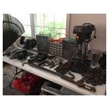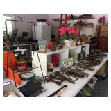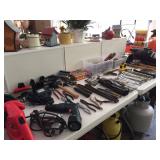 DR trimmer/mower, Troy Built electric garden cultivator, Craftsman 1/3 hp 8” drill press, Campbell Hausfeld pressure washer, compressor, wheel barrow, pull behind cart, router, Craftsman 10” radial arm saw, variety of power and hand tools, deep fryer, like new aluminum folding ramps, shop vacs, golf clubs, 8 ft fiberglass ladder, 6 ft wooden ladder, extension ladder, recycle bins, yard tools, decorative yard fountains and planters, park bench, porch swing, several patio sets, picnic table, metal yard art Herron, chemicals, Stihl chain saw, Craftsman rolling tool chests, metal shelving, so much more…… |