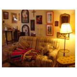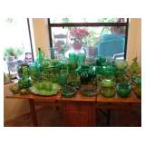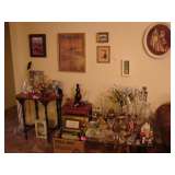 Not our normal style sale...this one is not going to be perfectly setup and organized....this is going to be a picker special! There are things all over the house, yard and shed! The previous owner loved to sew, design, paint, do woodworking, spin wool and just about every craft you can think of. There will be totes and totes full of items. There will be plants and pots, lawn tools, shop items and tons of knotted wood pieces. Several tree trunk tables and THREE singer sewing machines. The garage has tools, bird cages, dog cages, more craft items, and knick knacks. A very nice matching Hillcraft nail head sofa, love seat and 3 recliners sit almost untouched in the living room. End tables are located throughout the house and there are several unusual items of home decor. Plus a beautiful Thomasville dining set including table, hutch, and buffet table. Green depression glass abounds from a punch bowl to juicers to decanters, salt & pepper shakers, and even a measuring cup! More interesting yet: red, amber, black, and green carnival glass items too! And if anyone is looking for items for the kids: there's plenty for everyone. Barbies, dolls, wooden toys, porcelain dolls, and stuffed animals are just some of what's available. And let's not forget the gumball machines. Beautiful prints from Degrazzia, 3-D reliefs in watercolor paper, and more in acrylic. Weathered wood frames, picture frames, and unique decorative mirrors are all over the house. From kitchenware to lamps and cameras, to everything clothing and linen, and from sewing, spinning, and painting, there is positively something for everyone.