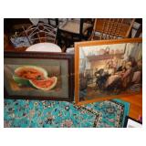 Household, vintage decorations, etc. 1 Auctioneer's Notes: Online-Only Bidding! Our Max Bid feature allows you to input the total amount of money you are willing to spend on a specific item. Our online bidding platform system will then update the bids so that you are the high bidder until it reaches your maximum bid 3 Wood oak antique bed, 56" x 56" headboard, 56" x 25" fails, 75" x 2.5 thickness on side boards 4 Primiative wall haning with 8 little drawers - 3.5" x 14" x 14" 9 2 wall hangings, largest 34" x 27", watermelon has a hole in it 13 Desk with slide out drawer, no contents, 22" x 32" x 36"shows wear 15 Vintage replica books, Charles Dickens, doll books, Christmas,Gullivers travels 17 18 Cheese box with assorted glass wear, 4 strawberry plates, stem ware, dinner plates 21 2 runners 24" x 96", assorted fabric, wall paper, throw in basket 17" x 23" 38 Seth Thomas Quartz battery operated anniversary clock with glass dome, 11"t 41 42 Terry Pirates Big Little Book shows wear & Story of Our Gang with cardboard figures dated 1929 45 Doll size mismatch tea set with tray, several pieces chipped 55 56 Johnson Brothers Asiatic pheasant, 2 saucers, 3 side plates and four dinner plates- one has chip 65 67 Assorted dish ware plates, pitcher, tea cups, etc, some show wear 70 Box of spices, ham pillow, wall hangings, brass door knob, etc 75 Sango Café Paris 4 dinner plates, 4 side plates 3 saucers and 2 coffee cups 76 Arnel's ceramic pitcher and bowl set , bowl is 12" x 16", pitcher is 9" 77 Global designs, service for 6, 4 pc place setting missing on saucer, some chips 80 Copral Portugal made, serving plate 10" x 7", 2 wood handle copper bottom cookware, 3 spoons 82 2 dog bowls, Varages plate, damaged sugar bowl, capodimonte, ceramic basket 84 Cookie house cookie jar 9", has nicks around lid and a plum pitcher 9" 92 Assorted perfume bottles, some avon mostly empty in wicker basket 95 Rooster platter 14" marked the Walter Hatches Italy with 3 side dishes and cookie jar 11", all show wear 97 Trickling springs milk bottle, Rawleigh green bottle, kerr pint jar, little crock, blue bottle, tallest is 9" 99 Battery operated lantern 12"t, brass basket marked India, V-Tech telephone and insulator 100 Christmas lot, sled, picture, big bowl, crochet angel, ornaments, etc 104 Assorted glass ware, wine glasses ,4 ice cream dishes, candy dish, blue champaign glasses, etc 105 Watermelon basket 9" x 14" x 9" and tin melon wall hanging, shows fading 108 Vanity set, 2 mirrors and a brush, both glass in mirrors are broke 114 115 Children's Cook books, children's books, poetry books, Christmas books, gardening books, etc 120 Royal victoria bone china 6 plates, spoon rest, cake plate and server, 4 - 8" plates, Canonsburg Pottery co. 7 christmas tree plates 10" one has crack, 3 - 8" farm fresh plates |