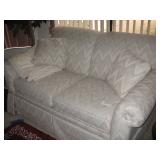 Trundle bed; Stand up freezer; much sewing and craft items including a sewing machine; vintage file cabinets; over size mirror; sport items; lamps; upholstered chairs; five very nice seat upholstered wrought iron chairs; bookcase/bar cabinet; much yard decor including live plants/cactus; framed art; dining room table with six chairs; exercise equipment; ultra suede three piece sofa set with wood trim; three other sofas, Ethan Allen, Thomasville, garage full of tools; nice size bakers rack; area rugs; books; king mattress set; bedroom furniture; bikes; women clothing from size M to XXL ; much house decor throughout home. |