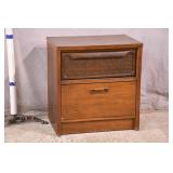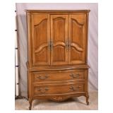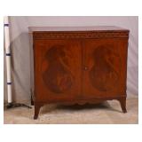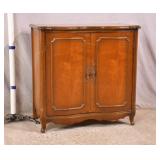 French style cherry 2 door music cabinet; 55-5233 - serpentine front - (finish as-is; chips in veneer on bottom edges) - 30x17x30