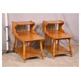 Pair of maple step back 2 tier end tables; 55-5252 - turned legs and spindles - (finish as-is) - 18x28x27.5