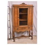 Walnut china cabinet with stretcher base; 55-5255 - 1 door over 1 drawer - (finish as-is) - 36.5x15x65.5