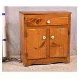 Small pine cabinet/end table; 55-5256 - 1 drawer over 2 doors - (top is loose; scratches) - 22x12x24.5