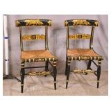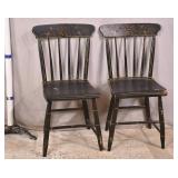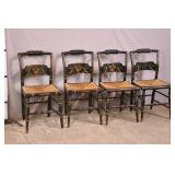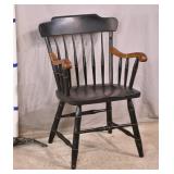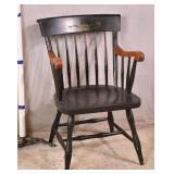 Bent & Bros. Co. black cane cut spindle back chair; 55-5320 - University of New Hampshire seal on backrest - stretcher base - (finish as-is) - 24x23.5x35