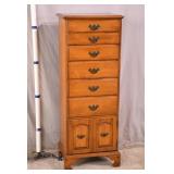 Maple lingerie chest with 6 drawer and 1 raised panel door; 55-5249 - (finish as-is) - 20x14x52