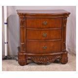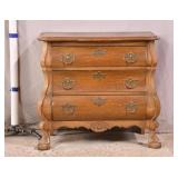 Small oak 3 drawer bedside chest with ball in claw feet; 55-5198 - serpentine front drawers - (finish as-is) - 26.5x13.5x23.5
