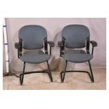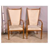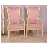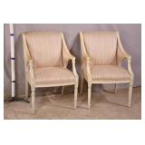 Pair of white framed open arm chairs; 55-5228 - (finish as-is; fabric is dirty) - 23x27x35.5