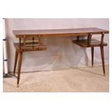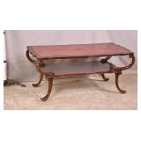 Mahogany 2 tier French style coffee table with leather top; 55-5229 - (finish as-is) - 41.5x22x18