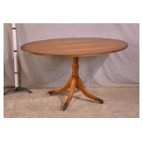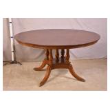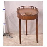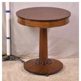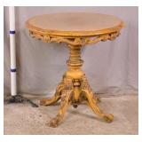 Carved round side table with ornate pedestal base; 55-5205 - banded top - (finish as-is; leans slightly) - 29.5x29.5x29