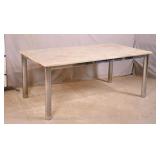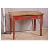 Distressed single drawer kitchen work table with tapered legs; 55-5278 - red painted base - 39.5x23.5x30
