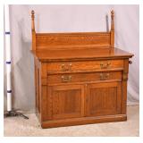 Oak washstand with backspash; 103-lot - 2 drawers over 2 doors - towel bar on side - 39x20x45