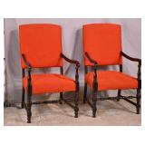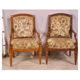 Pair of carved barley twist open arm chairs; 55-5193 - (finish as-is; 1 chair slightly darker) - 26x26x38.5
