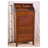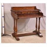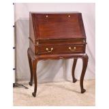 Carved mahogany French style slant front desk; 55-5224 - cabriole legs - (door is warped) - 30.5x18.5x43