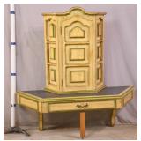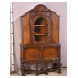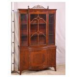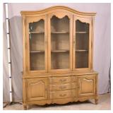 Dixon-Powdermaker French style 2 part china cabinet; 55-5291 - wire over glass doors - raised panel sides and doors - divided silver drawer - serpentine front drawers - (finish as-is) - 62x21.5x81
