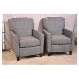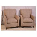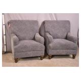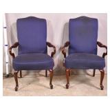 Pair of Queen Anne style open arm chairs; 13-lot - shepherd's crook arms - (fabric is dirty/stained) - 29x26x43